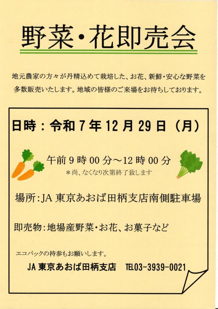![]() | 2025年12月29日(月) 農家さん主催 野菜・花即売会 吉田園芸 |