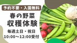 | 2026年04月18日(土)〜2026年04月19日(日) 収穫体験(スナップエンドウ・ラディッシュ・小カブ・小松菜) 白石農園 東京都練馬区大泉町1-54白石農園 詳細 |